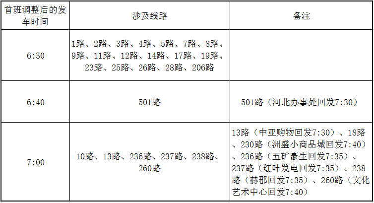 (一)2月15日、16日(三十、初一)首班延后發(fā)車、末班提前收車,具體明細見下表: