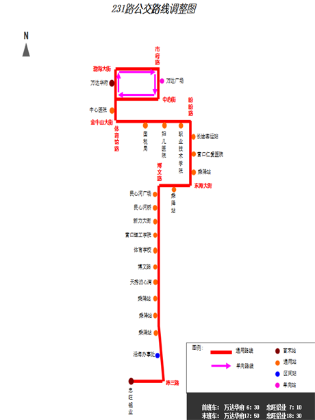 開往萬達(dá)廣場方向:7:10—7:45/17:20—18:00(經(jīng)停沿海辦事處時間預(yù)計7:13—7:48/17:23—18:03)。